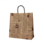 ナチュラルな茶色のクラフト紙にレース柄のプリントが施され、可愛くておしゃれな紙袋です。